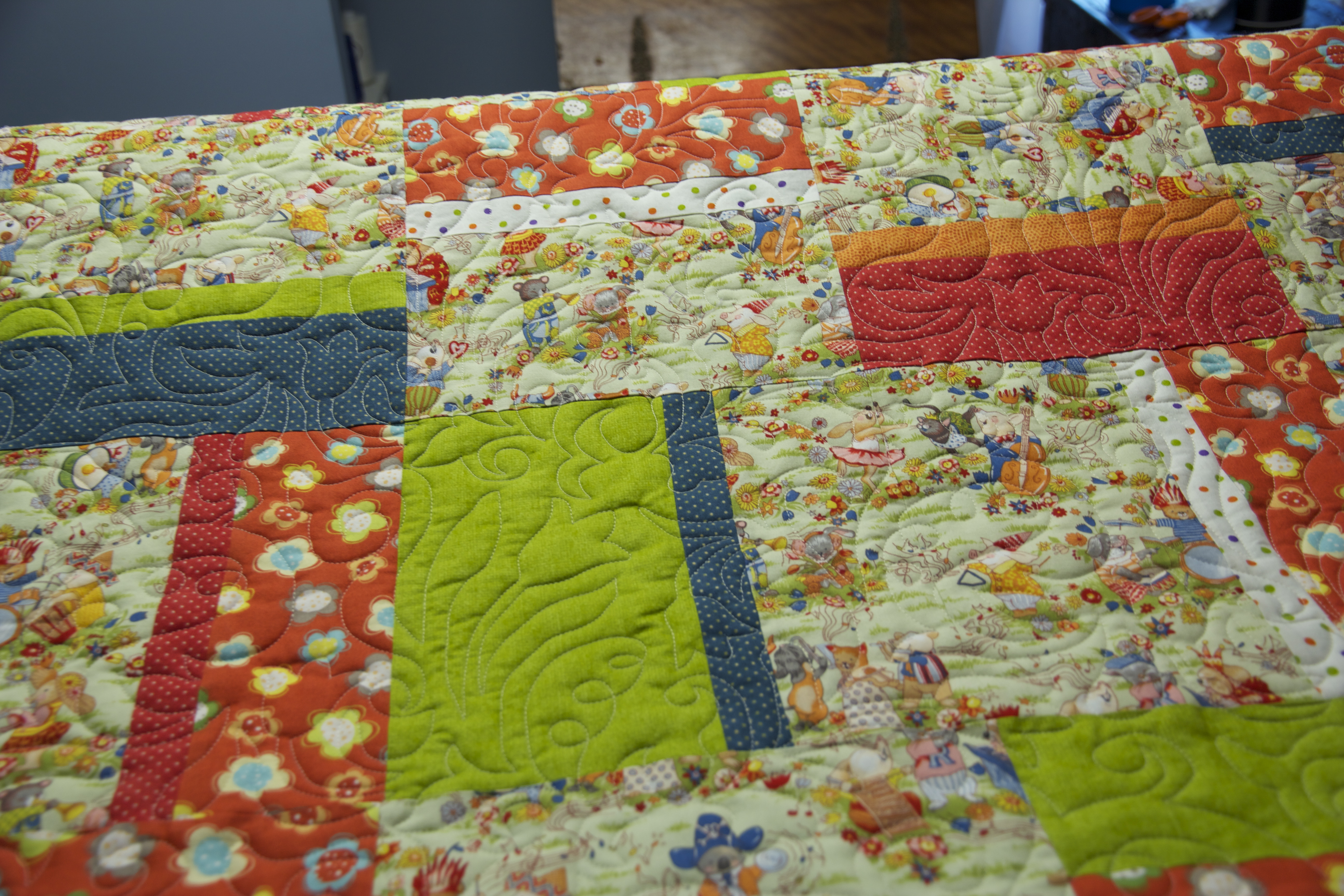 I used a pantograph “Double Dutch” by annebright.com. I am surprised at how much I enjoy the pantographs. This is good news as it means I enjoy working at the back of the machine, pantographs, as much as I do at the front of the machine, free motion. I’ll upload pictures of the completed quilts in a bit.