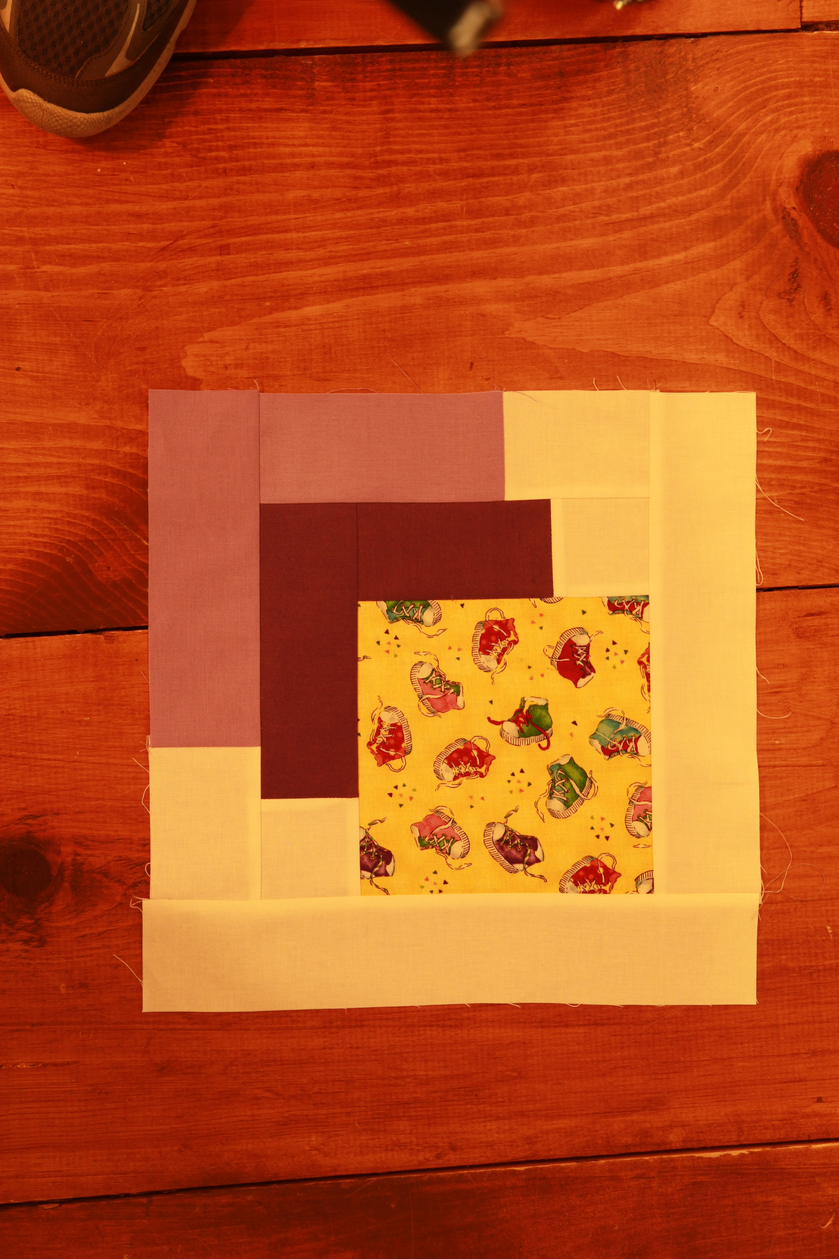 I’m working toward a shadowing effect.  Then I figured out I wanted a twelve inch block.  From there I came up with the sizes of my individual pieces.  Here’s my prototype block: