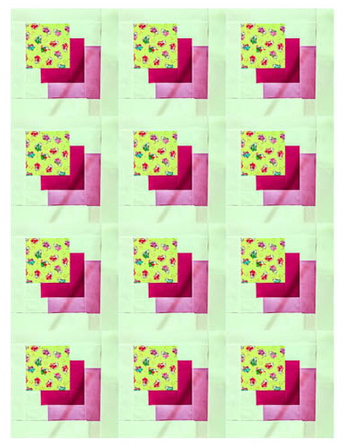 IMG_3154IMG_3155 I should have photographed this on white because I am hoping the squares appear to jump from the white background in an attempt at a three dimension effect.  I changed the measurements so we’ll see what affect that will have in the overall picture as light does not keep within dimensions but maybe quilt-top pieces should.  We’ll see if this works.  I think I am happy at this stage so it is now time to make eleven more blocks.