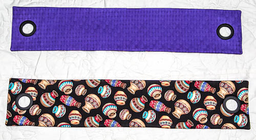 Basically, it is one strip with differing fabrics for the inside and the outside along with interfacing. Then put in a grommet on each end, sew the sides partially down so the bottle can slip in on the lower side in case it is a fat bottle. Voila! I don’t know who designed this project because the pattern was provided at a function at Anns Fabrics. It is quick, easy and I should make more of them. I also have to say there is no quilting involved, but I am posting it here anyway. Happy January!
