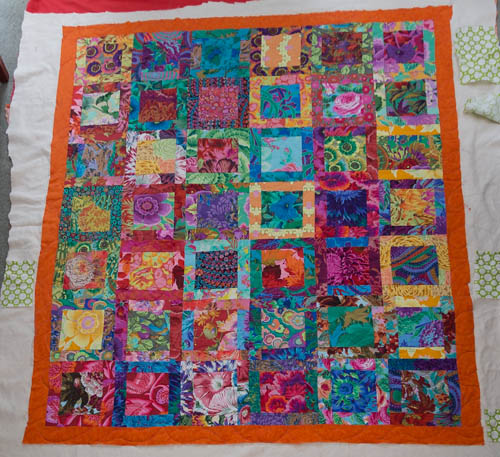 I also had the pleasure of quilting Susan’s beautiful and colorful quilt. Aren’t the colors and variation of colors wonderful? I don’t think there was a single repeat of fabric!