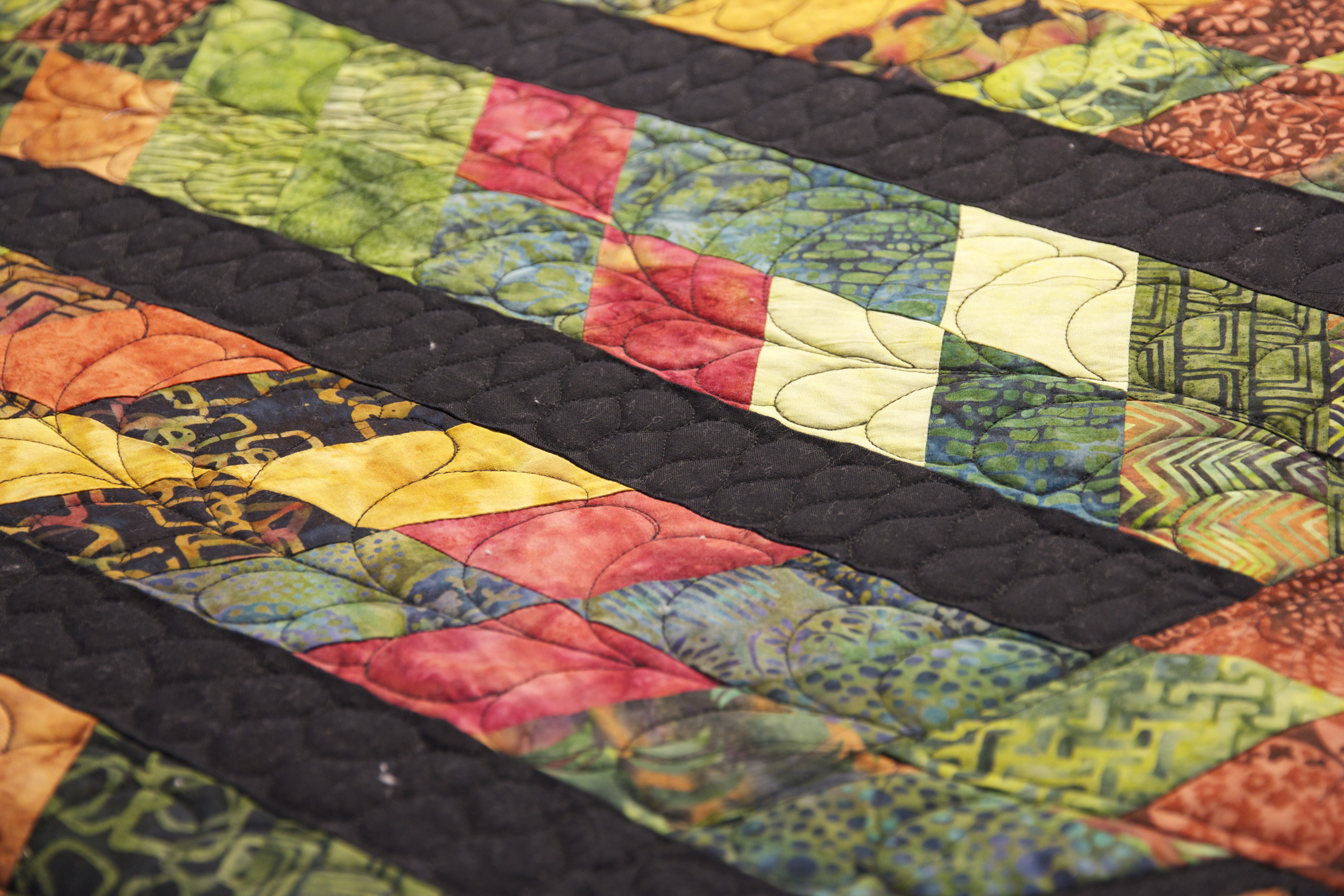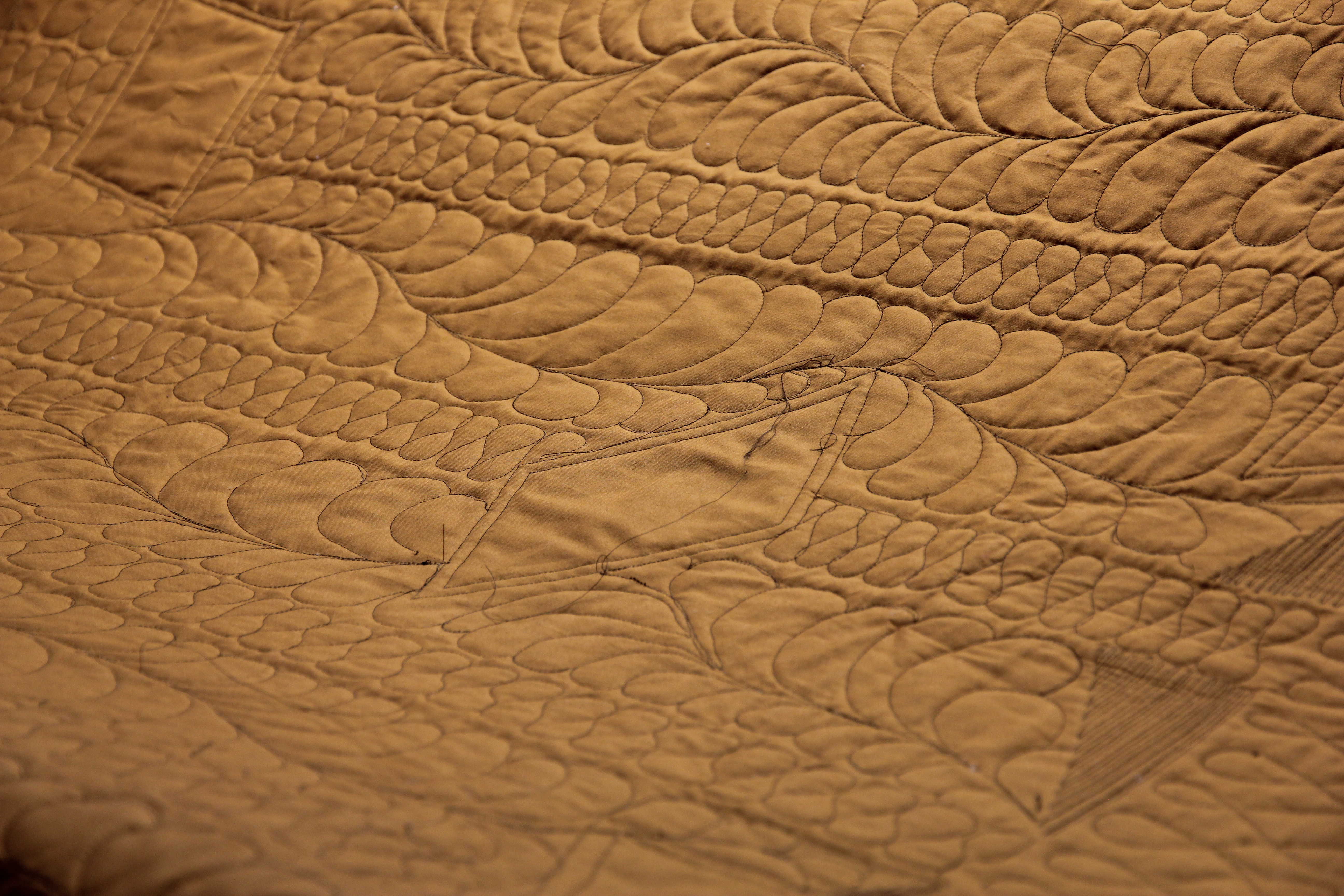Here’s an initial glance at my autumn jelly roll quilting.  I must be insane the way I pick a light back with dark thread, but I like to see my stitches…on my quilts.  How else does one improve?IMG_3309 IMG_3311 IMG_3314 I know I shouldn’t upload imperfect pictures of my quilts, but I can’t help myself.  I still have many threads to bury and, of course, this seriously needs delinting.  Besides, I am always dissatisfied with something about my work, and that is unlikely to change, because that is just how I think about things.  I can always improve upon whatever I do.   I figure as long as I’m having fun, what does it matter?