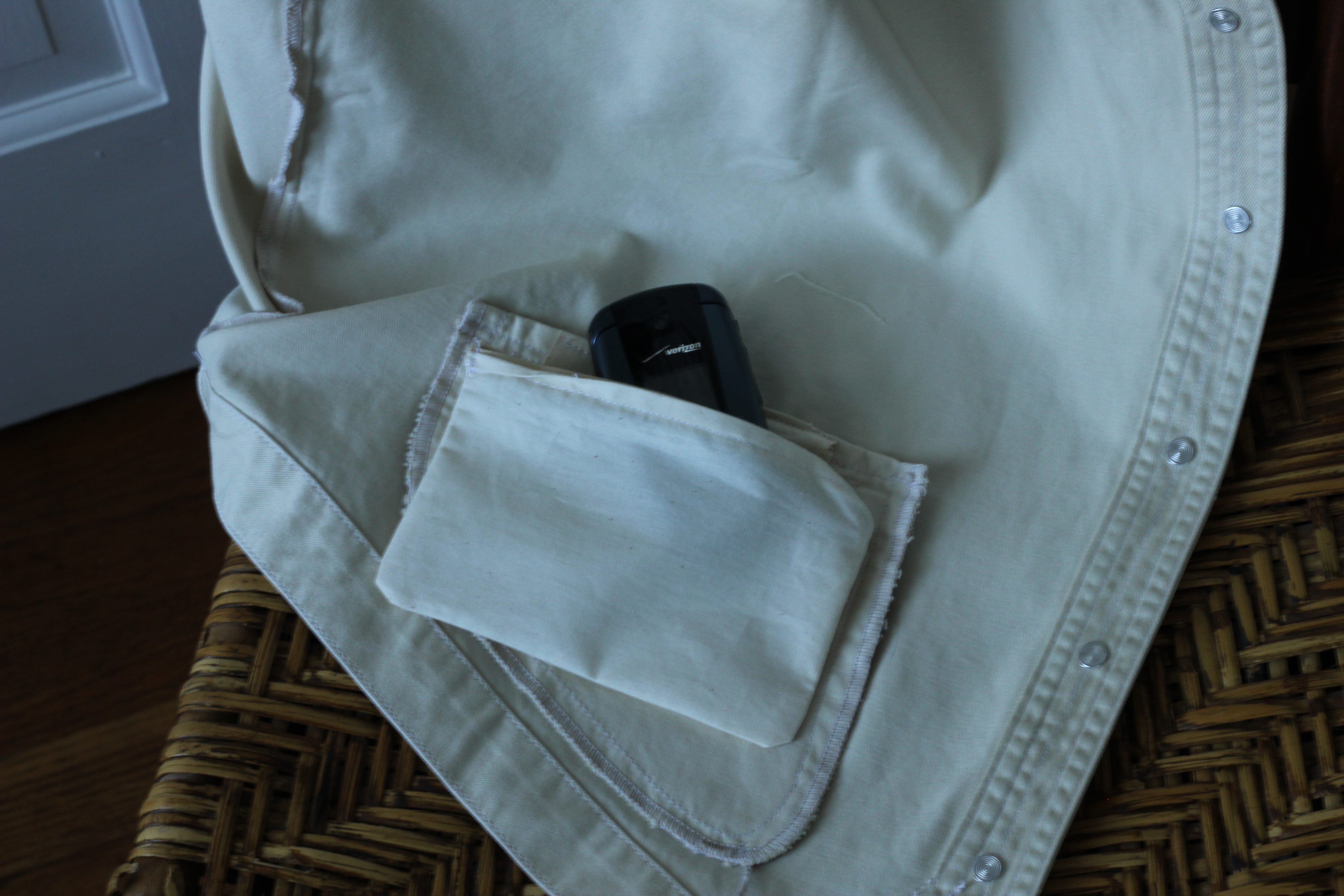 IMG_3730The Orvis reviews had referenced the three front pockets, but in reality these pockets might hold a key and a little change with no security.  As I like the fit and the weight of the vest, I decided to take matters into my own hands.  Due to the style of the original pockets, the inside of the garment works well for adding interior zippered pockets that won’t show on the outside.  The zippered pockets can be attached to the original pockets’ lining, not the body of the vest.