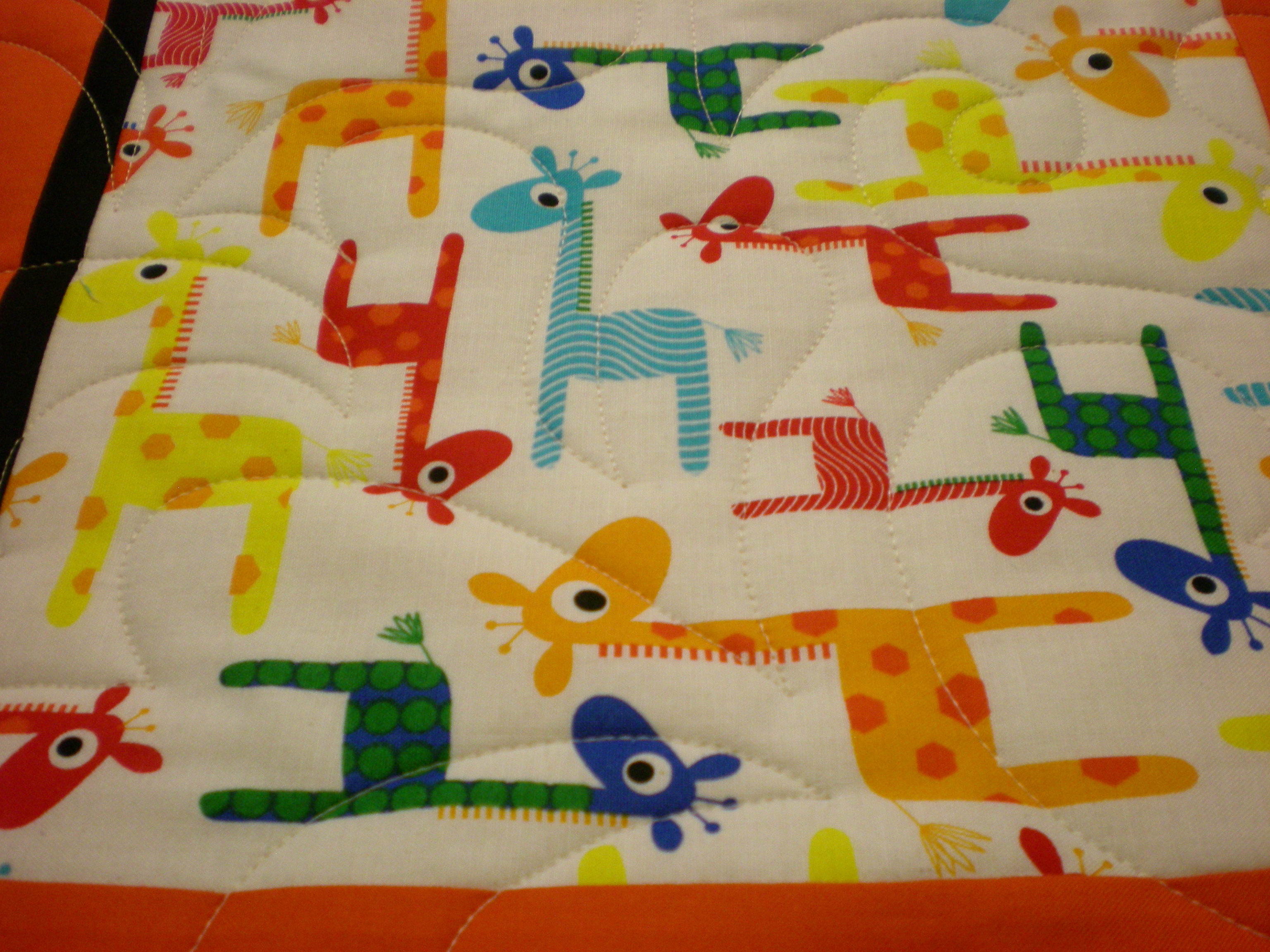 I’m making some quilts, which support a baby’s visual development. Initially, babies see black and white or high contrast. Then they see the fine lines. Finally, they will begin to differentiate between colors. I will have these products coming up on my Etsy shop in mid-July. Here are a couple of these quilts that I recently longarmed (I am making this a verb) and ready to be squared and bound: