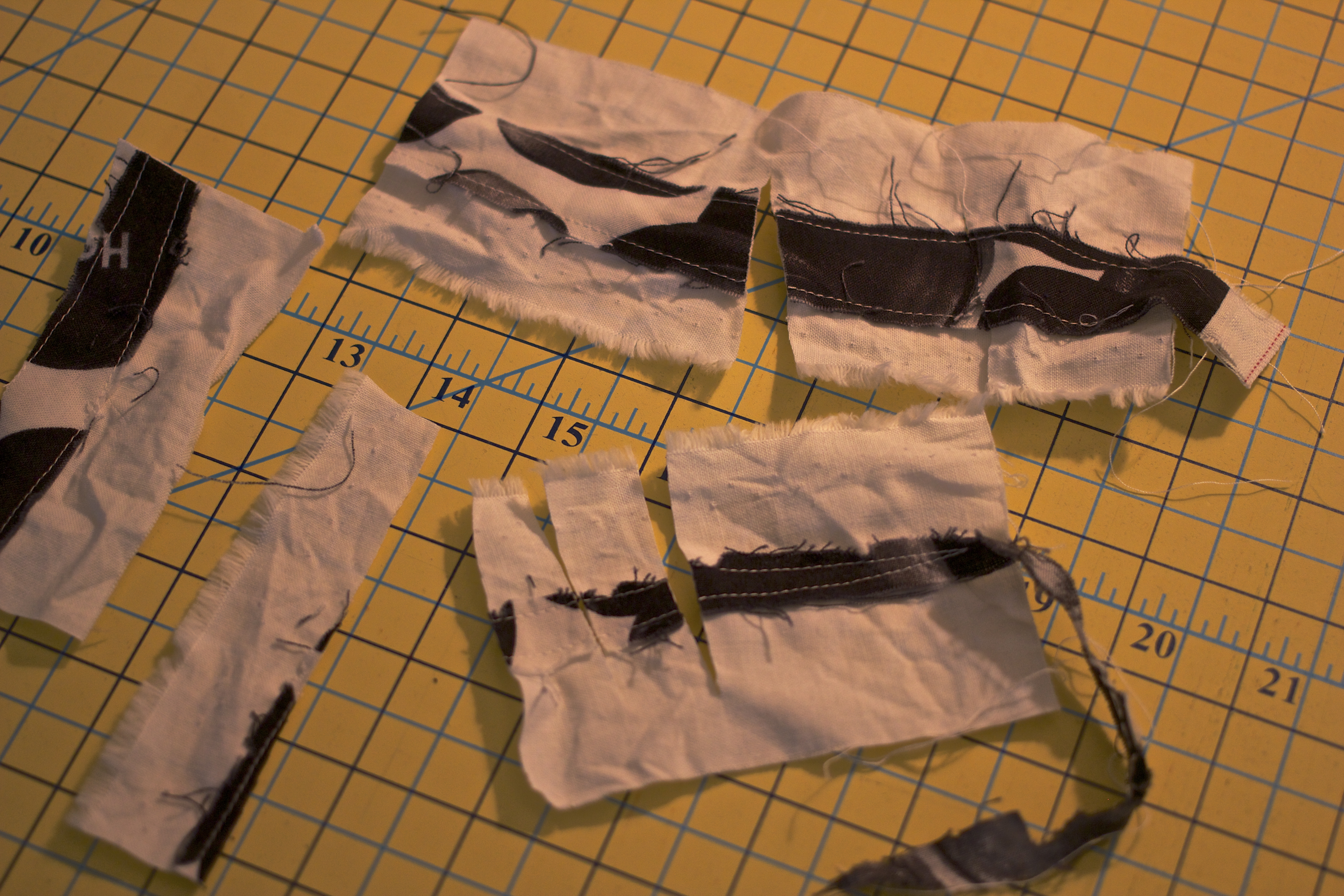 is just the result of another fabric test. Any fabric that comes into my studio is tested for quality and to make sure the color will not run onto other fabrics. I prefer to buy high quality fabric from local quilt shops. However, in this case I needed a specific design that I could only find on-line. Fortunately, the thread count appears high, quality good to excellent, and the black did not run onto the white fabric to which I attached it.
