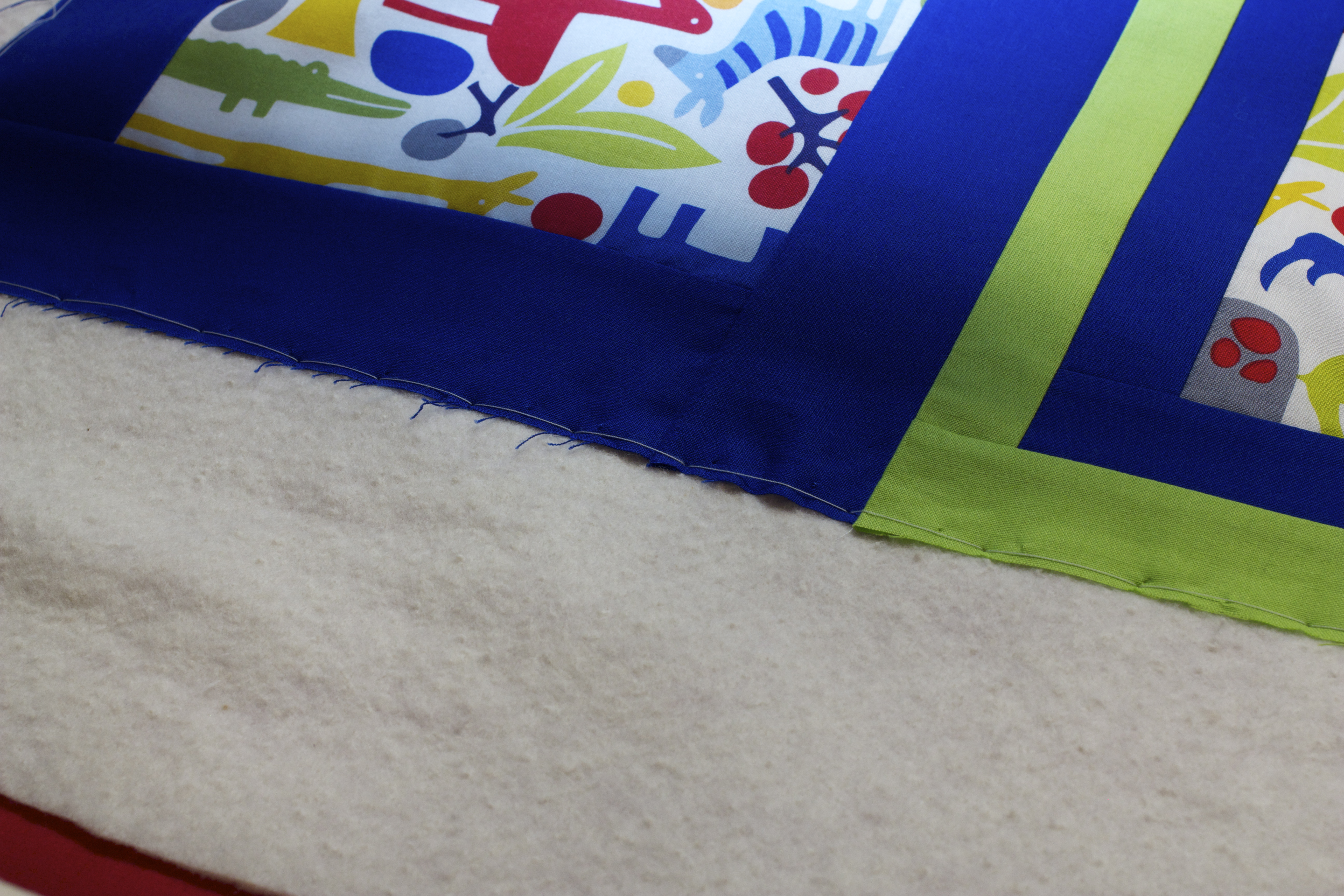 I like to add the batting at this point. The batting just floats on top of the backing.