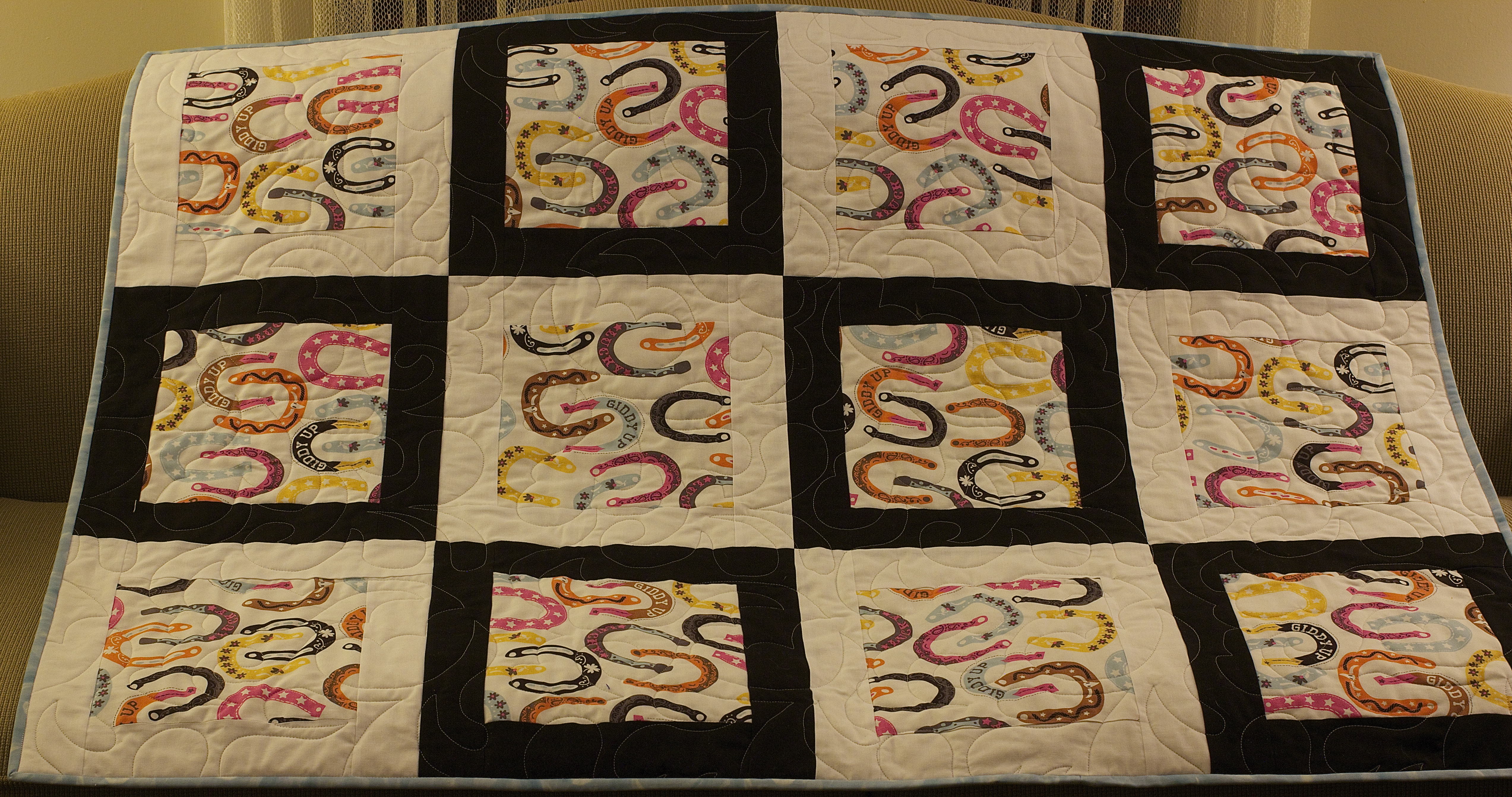 And here is the front and back of the completed quilt with the binding sewn on by machine.