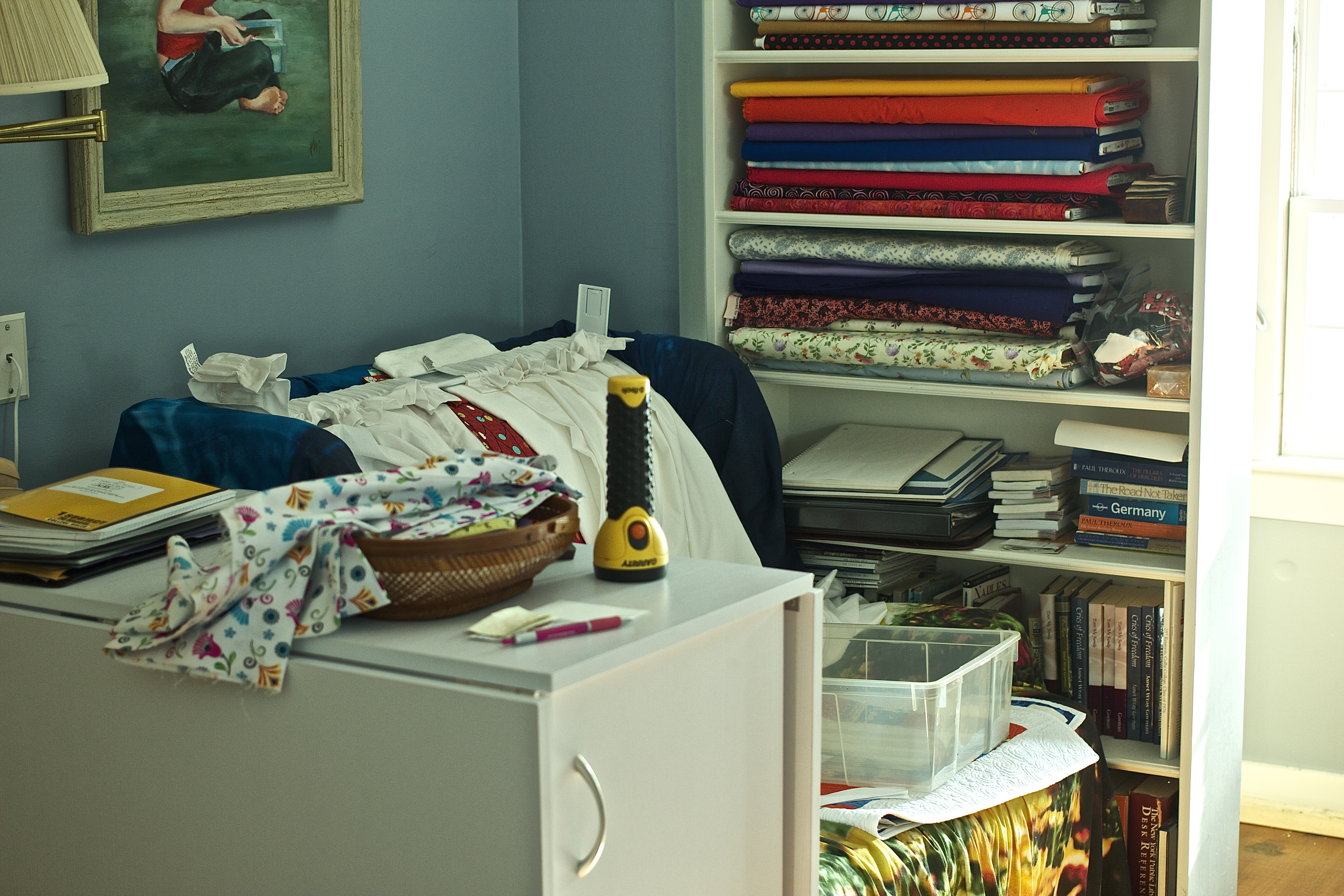 It’s time to get back into the studio. I’m back from my delayed trip to North Carolina. The snow has melted from the roof and the leaking has resolved. Today, I unwrapped Millie and organized my studio. Here’s the before: