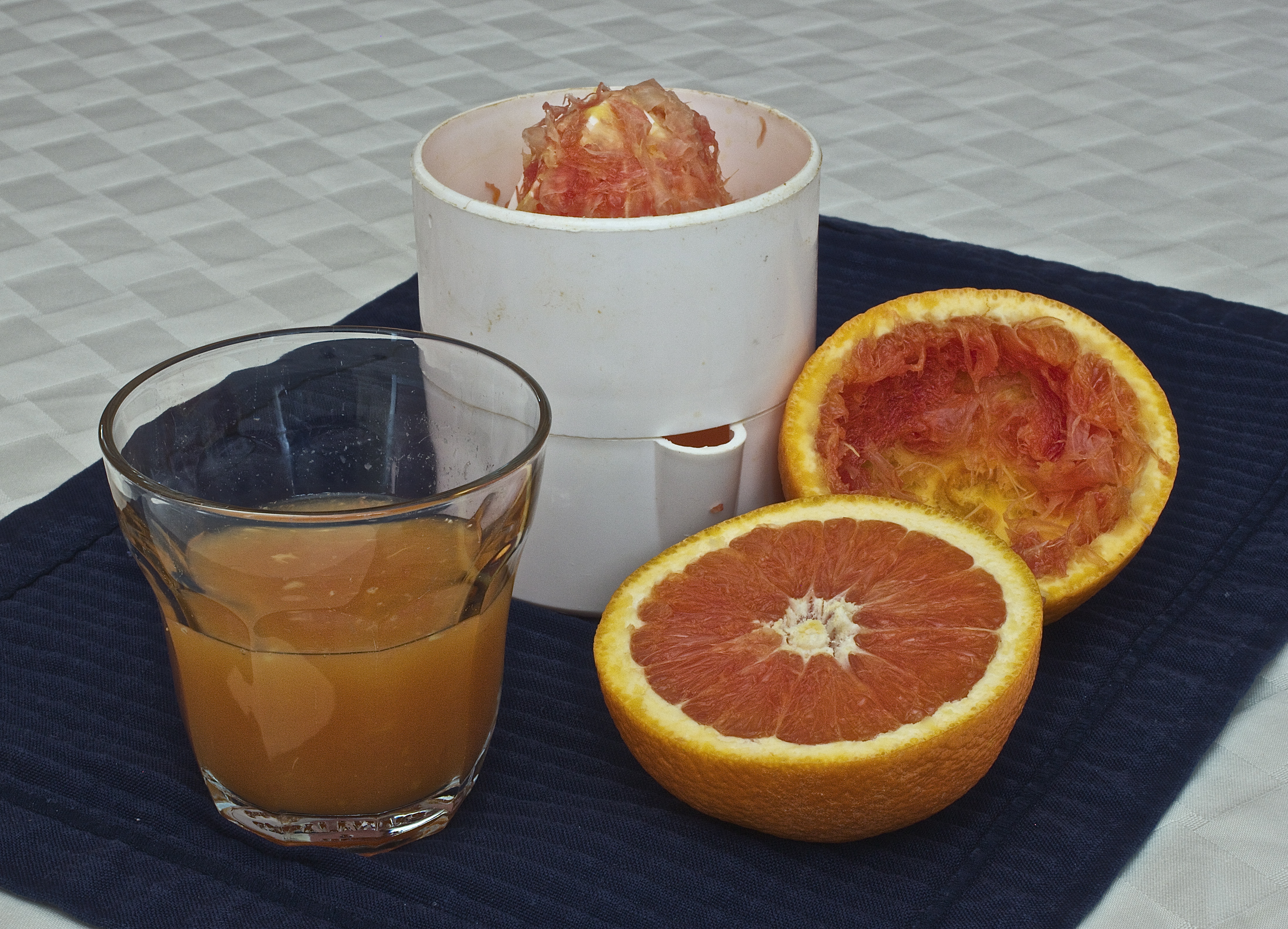 The Daily Post’s weekly photo challenge is ‘fresh’.  As this is late March in urban/suburban New England, there is nothing fresh directly outside my window.  Think very dirty snow.   March is, in fact, my least favorite month, with April coming in at a close second. So instead of going outside, I created a still life with fresh orange juice in mind.  I need to have themed photo projects more often, as it makes me really think about my camera and how I might want to change various settings for a better photograph.  Generally, I concentrate only on shutter speed, aperture, and iso.  This time I considered focus point, metering, white balance, and, hmmm, don’t even know what it is called: ai servo vs one shot, etc.